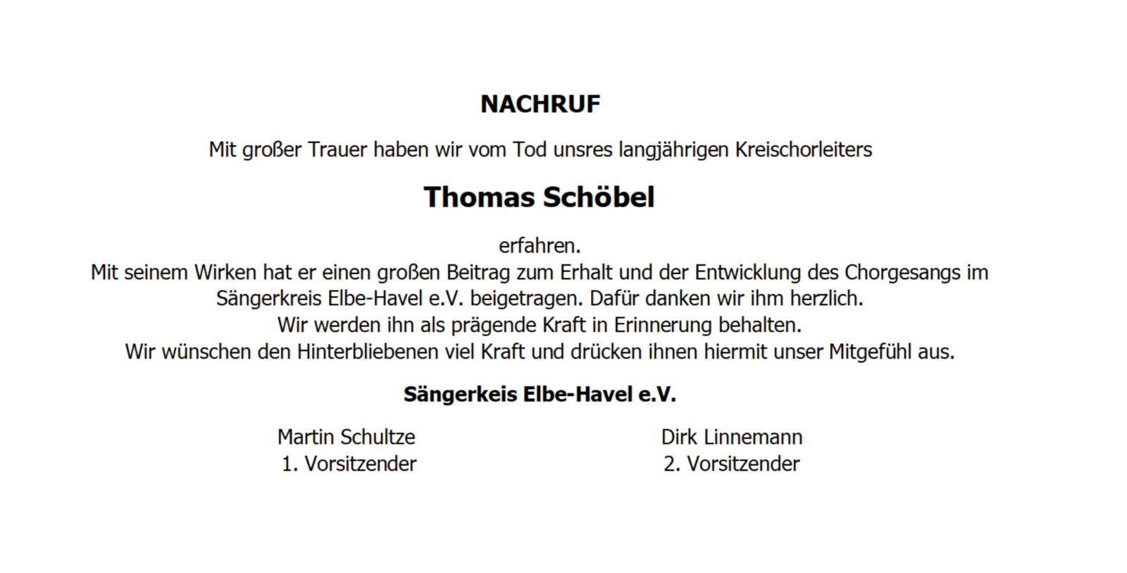 Süd V e. V. Genthin“ und gründeten den Sängerkreis Elbe – Havel e.V. Ein guter Name; weil unser Sängerkreis im weitesten Sinne die Chorarbeit entlang von Elbe und Havel umfasst und über politische Territorien hinweg seine Tätigkeit wahrnimmt.